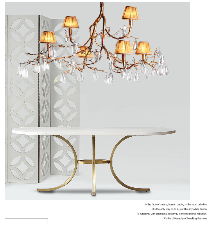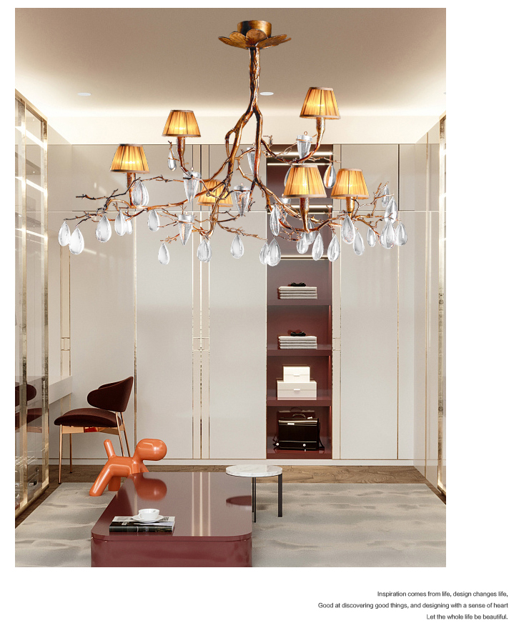 All-copper European retro chandelier crystal lamp American lampshade living room lamp post-modern simple bedroom home atmosphere branch type